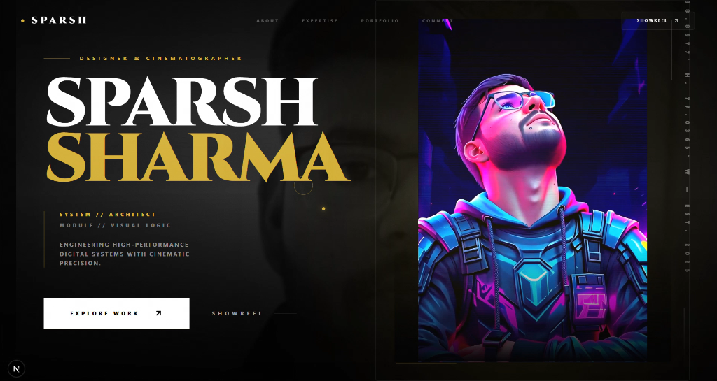 A high-performance personal brand experience featuring physics-based interactions and cinematic lighting.